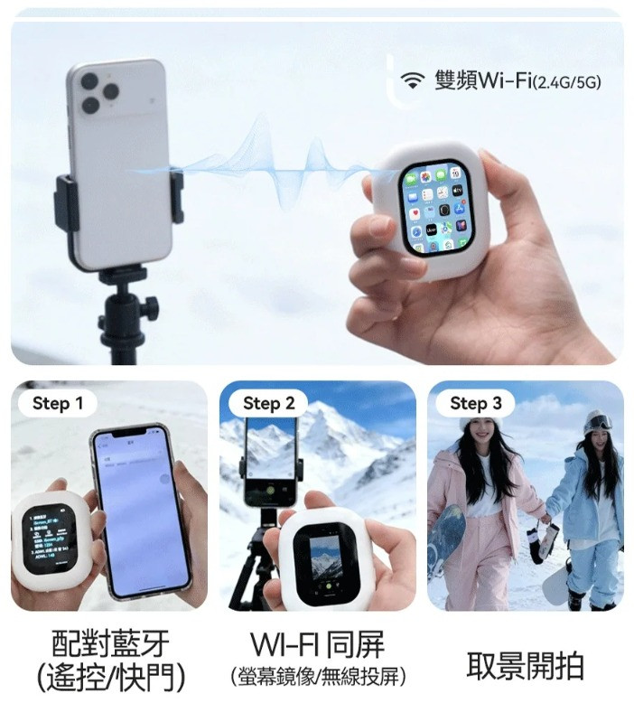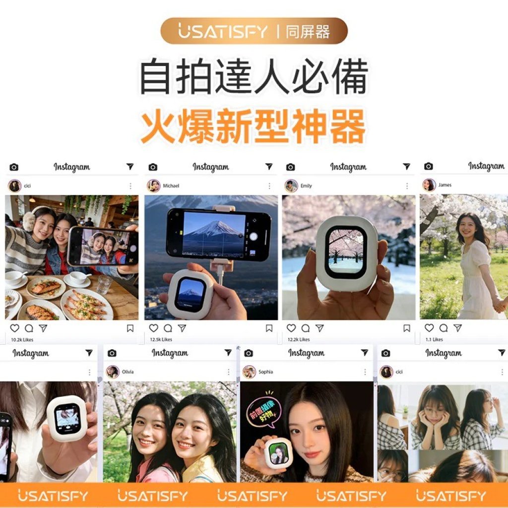 美國 USATISFY 迷你磁吸 手機後鏡自拍同屏 聲音濾鏡 同步無線後置自拍顯示器